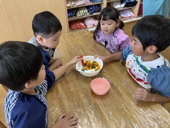 なのはな組みんなで、お月見にちなんでかぼちゃだんごをクッキング♫