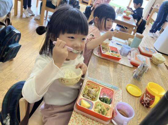 さて、たくさん運動した後は給食の時間!