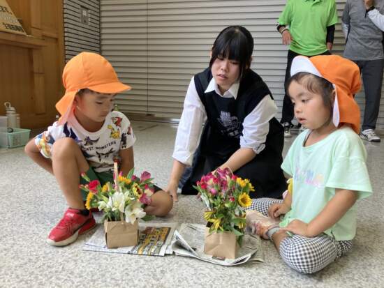 4種類の花がなんという名前かを教えてもらい、お花を順番に生けていきます!
