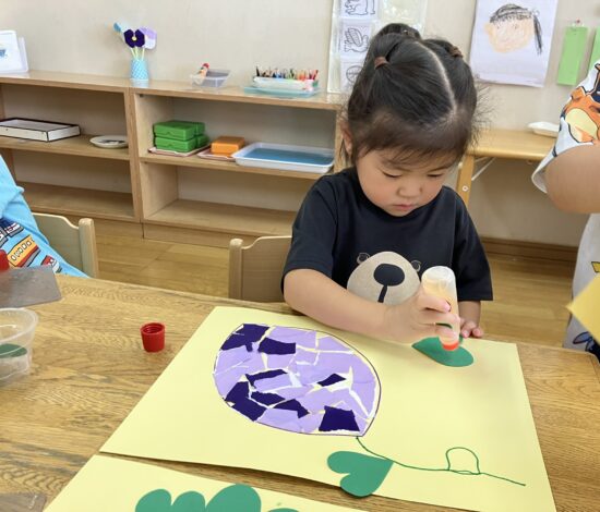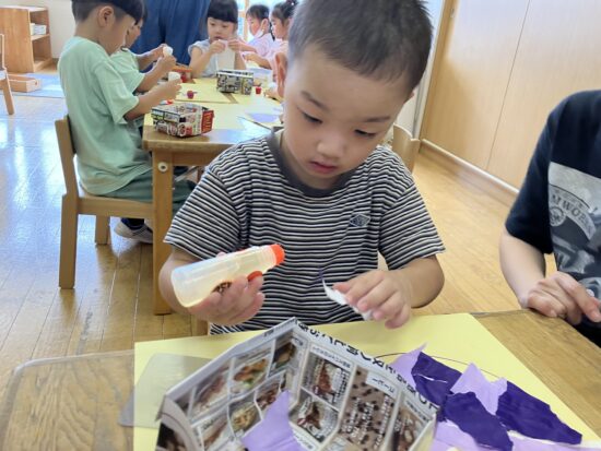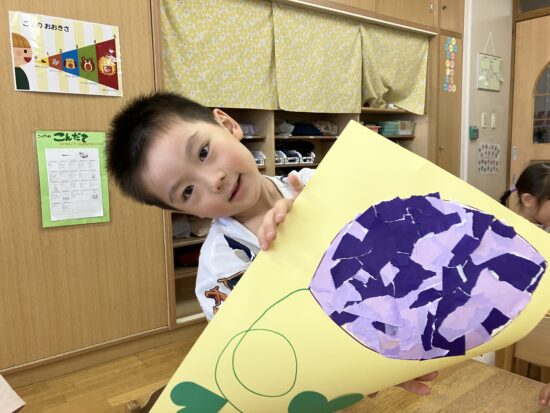 みんなで植えたさつまいもが大きく育ちますようにの願いを込めて9月の製作は「さつまいもの製作」をしました。