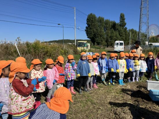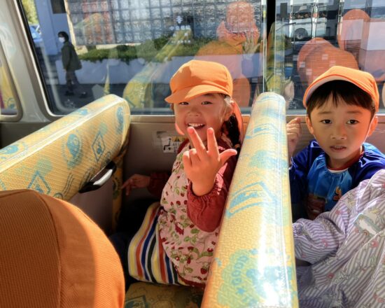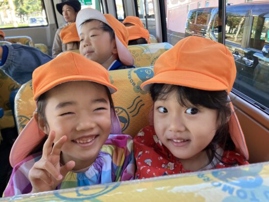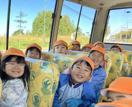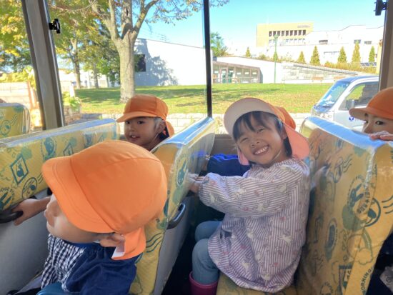 バスの中では、『やきいもグーチーパー』の手遊びをしたり、みんなで「どのぐらいの大きさになっているかな?」とお話したり、わくわくした気持ちで向かいました。