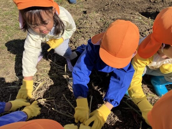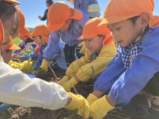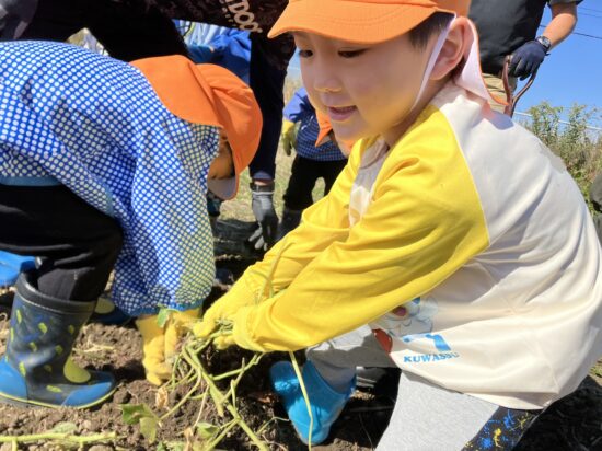 お友だちと協力して一緒にさつまいものツルを引っ張りましたよ!