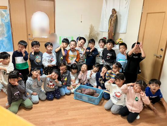 幼稚園に戻ってからさつまいもを囲んで記念撮影をしました!