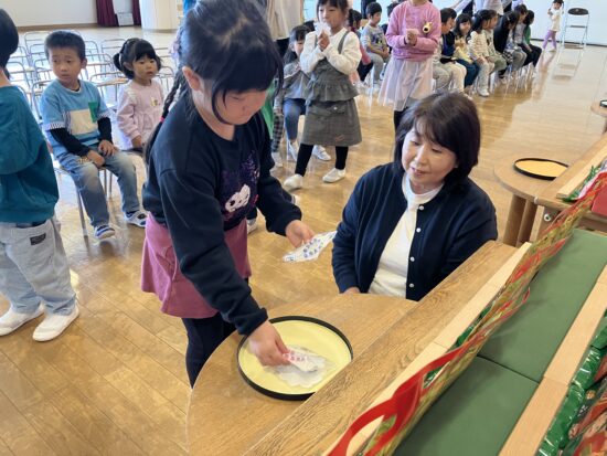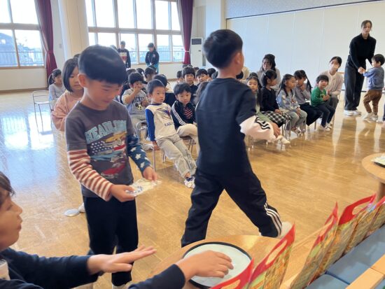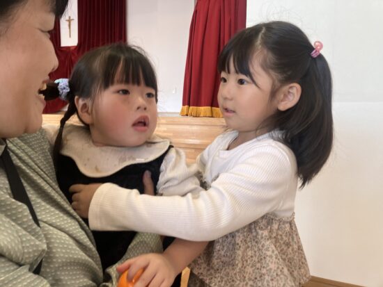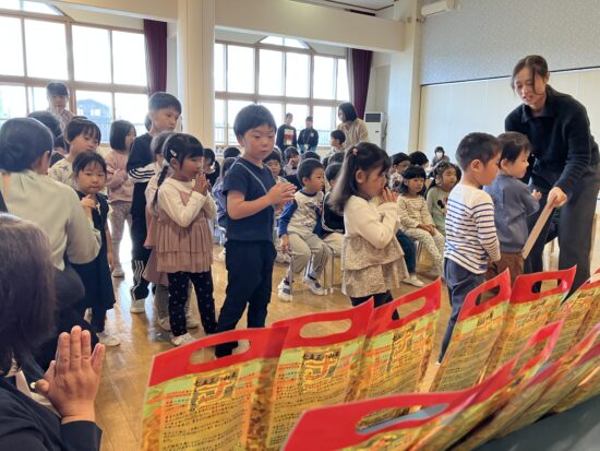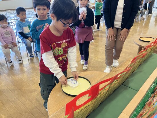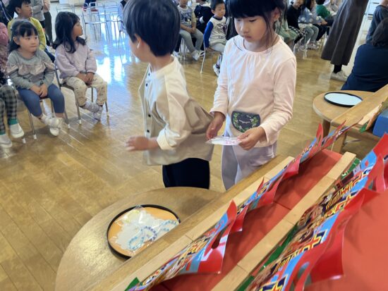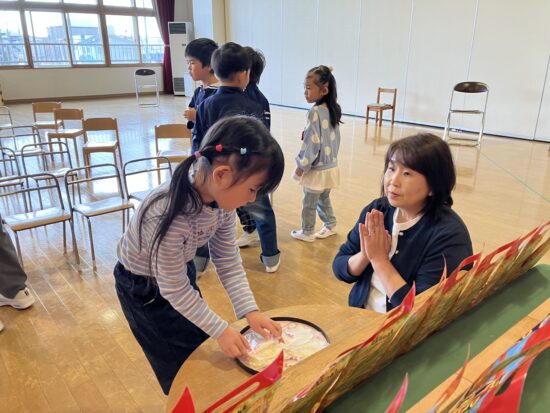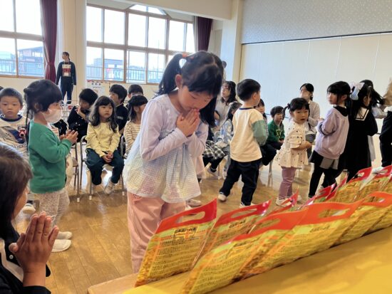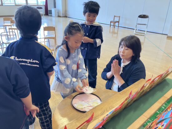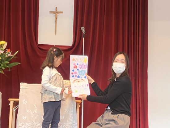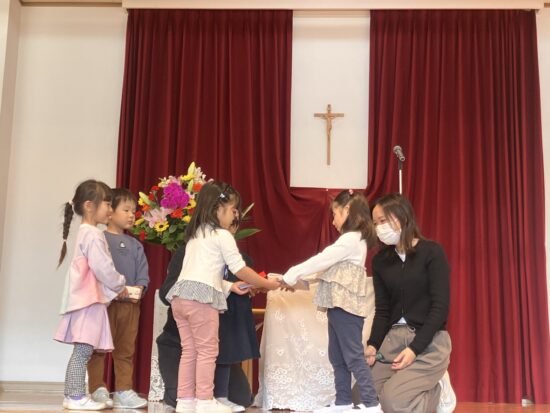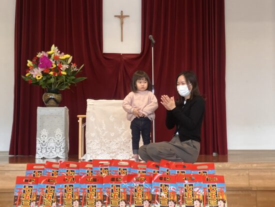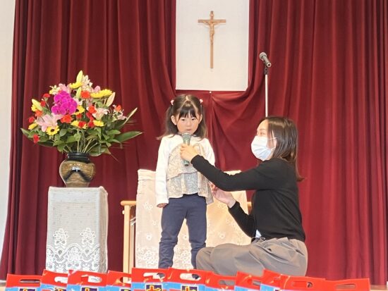 そのあとは七五三のおやつと、年長さんが作ったロザリオも祝別していただきました。