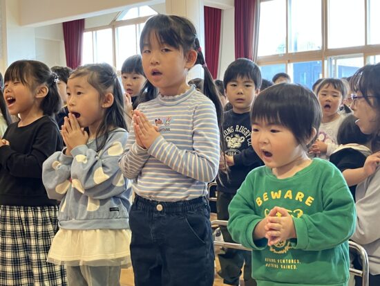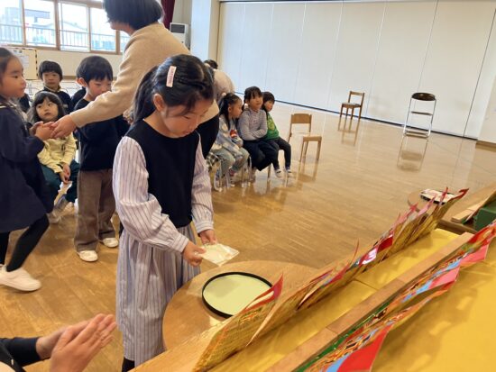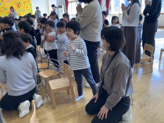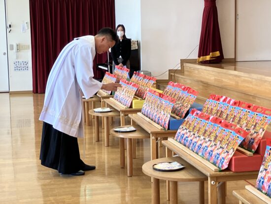今日は天使幼稚園のみんなで七五三のお祝いをしました。