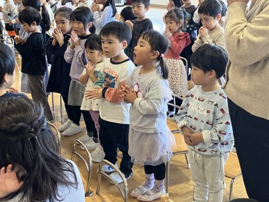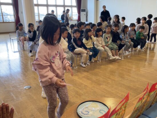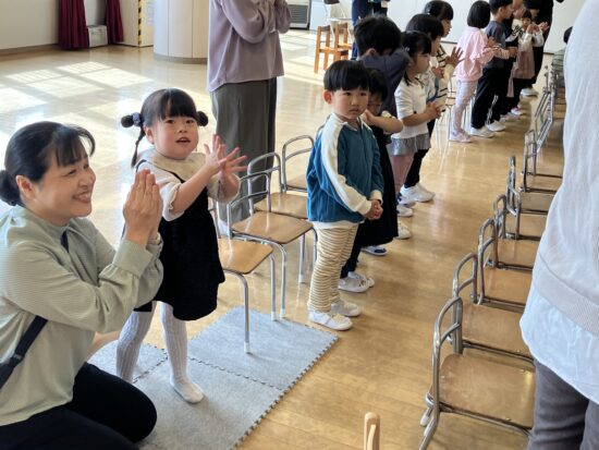 満3歳児さん。ドキドキしたけれど、自己紹介ができました!