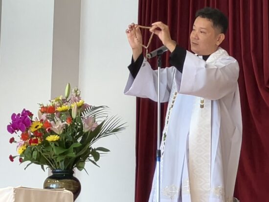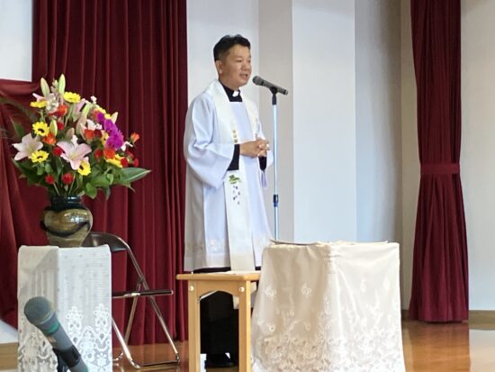 神父様も来てくださり、厳かな雰囲気の中お祝いをします。