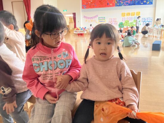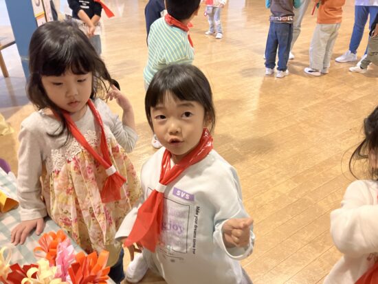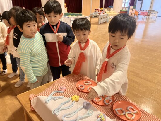 2歳児クラスおひさまさんと未就園児親子サークルのエンジェルクラブさんも一緒にお店屋さんを出しますよ!