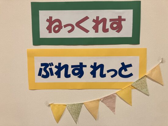 今日は遊戯室に集まり開店準備を行いました。各クラス3つのお店屋さんを開きますよ。