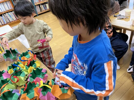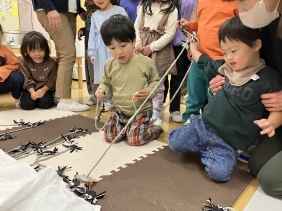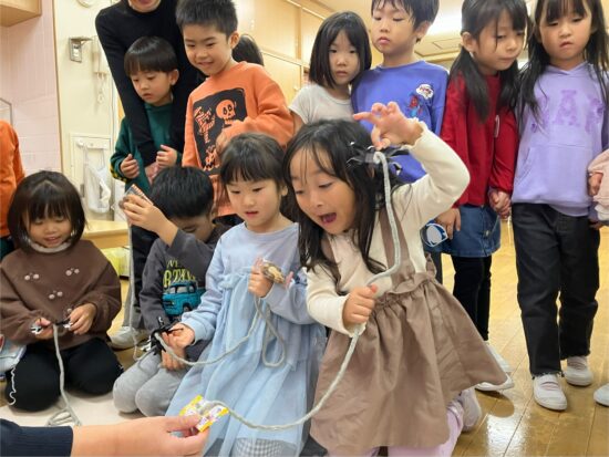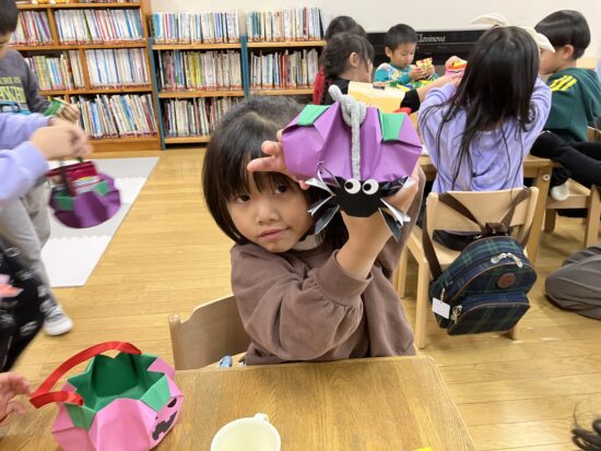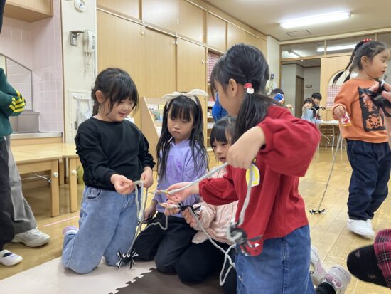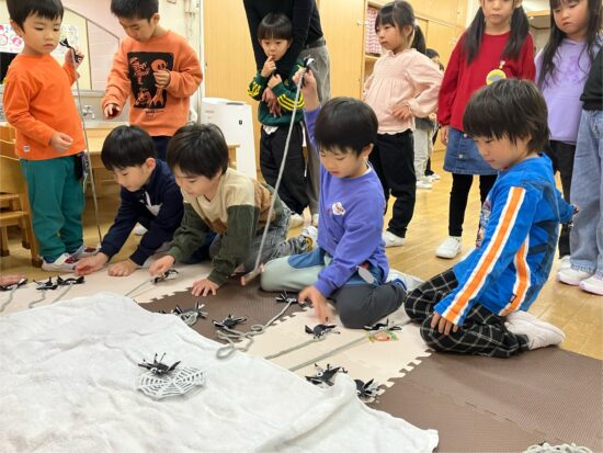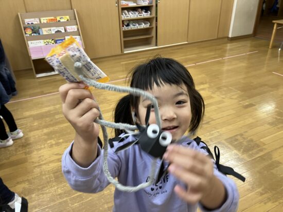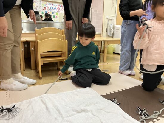 その後、お部屋に戻るときは、クモさんをお散歩させながら戻っているお友だちもいましたよ♪