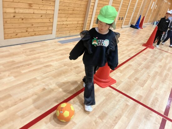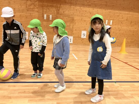 いよいよ楽しみにしていた、1年生との交流です。はじめに自己紹介をしてから、一緒にサッカーを楽しみました。みんな、少し緊張気味…小学生のお兄さんお姉さんがルールを優しく教えてくれました。