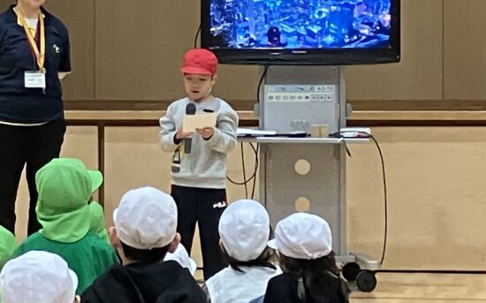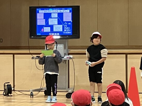 最後はみんなで活動の振り返りを行いました。「天使幼稚園のみんなと遊べてよかった。」「1年生と一緒に遊んだことが嬉しかった。」とお互い、有意義な時間を過ごせたようでした!