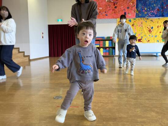 お集まりの時間は、手拍子をしながら行進です。