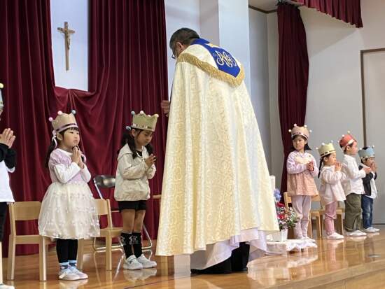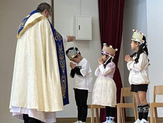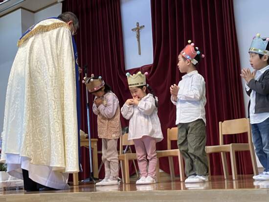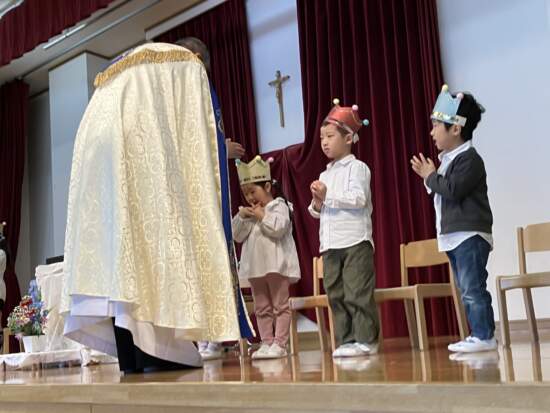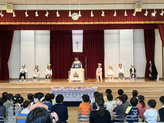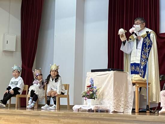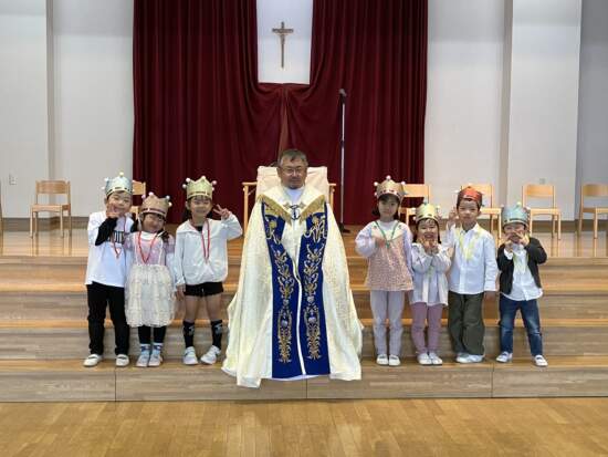 今年度、みんなの誕生会を一緒にお祝いしてくださるのは蓑島克哉神父様です。